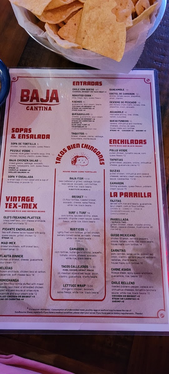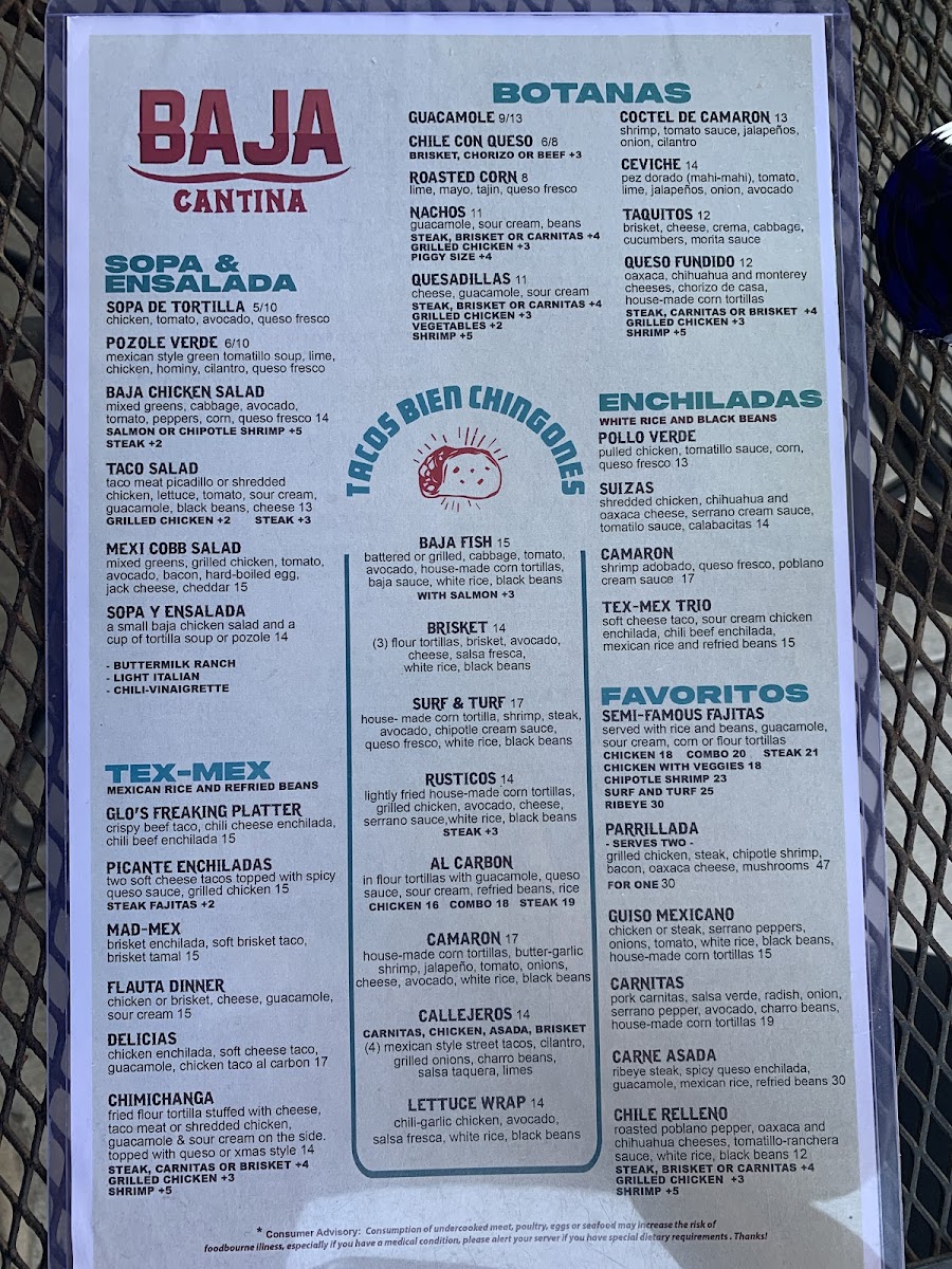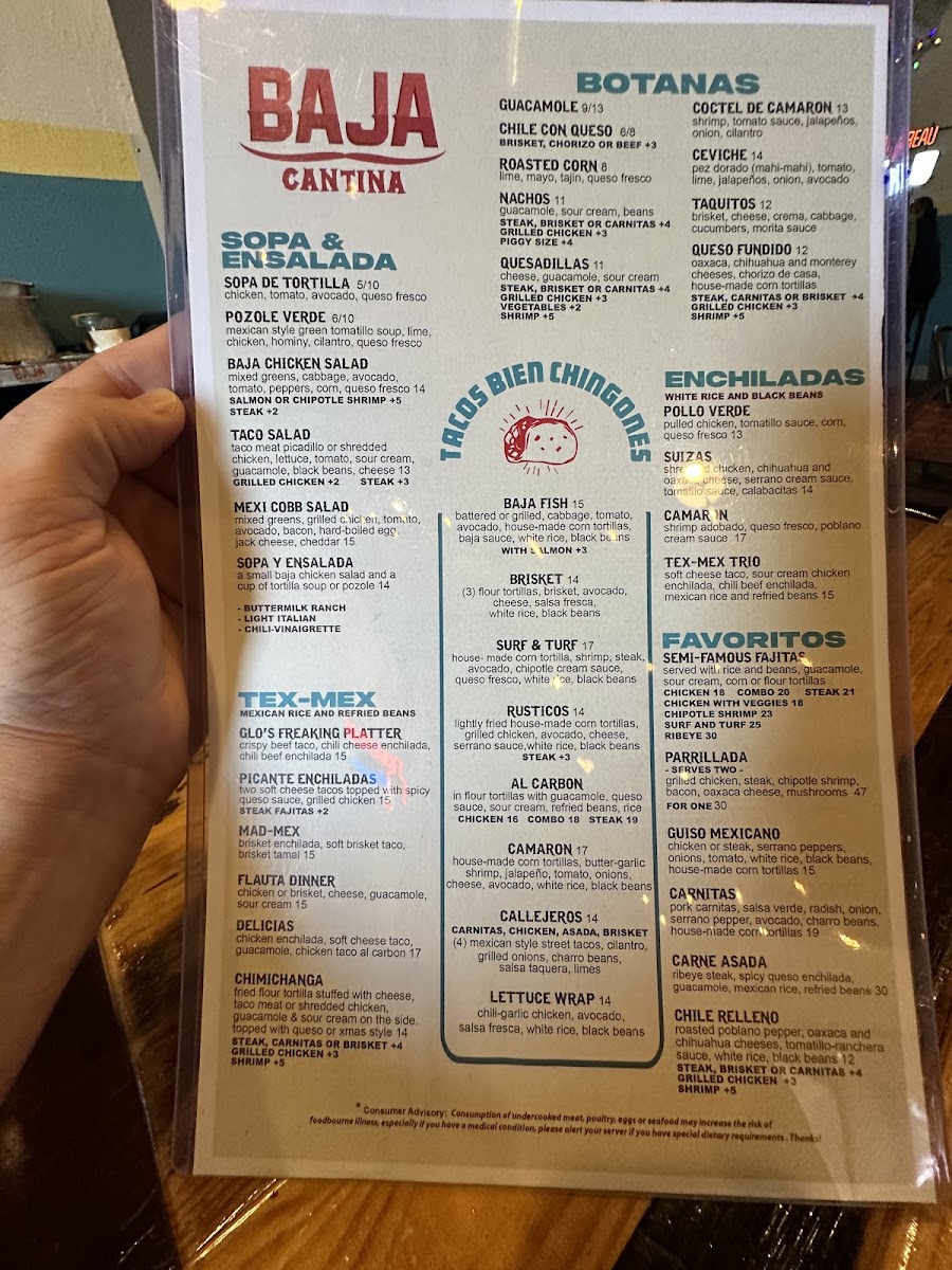 Baja Cantina Menu